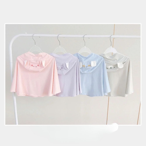 Nón trùm đầu kín đáo: Nón áo rộng, ôm vừa vặn đầu bé, giúp bảo vệ phần đầu, cổ và tai khỏi ánh nắng trực tiếp. Đặc biệt, trên đỉnh nón còn được trang trí bằng những đôi tai thú nhỏ xinh xắn (tai gấu, tai thỏ...), làm tăng thêm vẻ đáng yêu cho bé yêu nhà bạn.