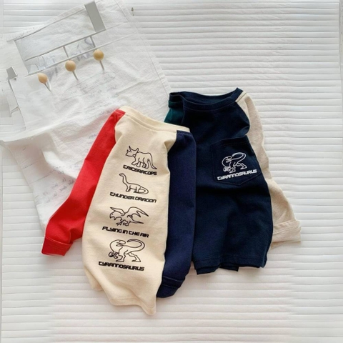 Màu sắc áo nhã nhặn, phù hợp với mọi tone da, cực dễ phối đồ. Hoạ tiết in khủng long ngộ nghĩnh, chắc chắn sẽ khiến bé thích mê.