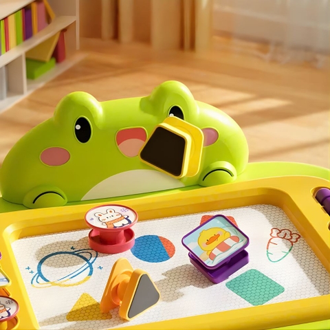 1. Công nghệ tự xóa hiện đại và sạch sẽ Khác với bảng phấn truyền thống gây bụi mịn hay bút màu làm bẩn quần áo, bảng vẽ sử dụng công nghệ từ tính. Bé chỉ cần gạt nhẹ thanh xóa là toàn bộ hình vẽ sẽ biến mất trong tích tắc, sẵn sàng cho một tác phẩm mới. Điều này giúp không gian sống luôn sạch sẽ và tiết kiệm chi phí mua giấy mực.