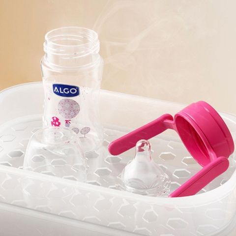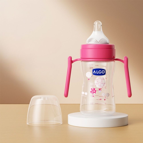 Dễ dàng tháo lắp và vệ sinh: Các bộ phận của bình sữa Algo (thân bình, núm ty, vòng cổ, nắp đậy, tay cầm) có thể tháo lắp một cách đơn giản, giúp việc vệ sinh, tiệt trùng bằng nước sôi hoặc máy tiệt trùng trở nên dễ dàng và triệt để.