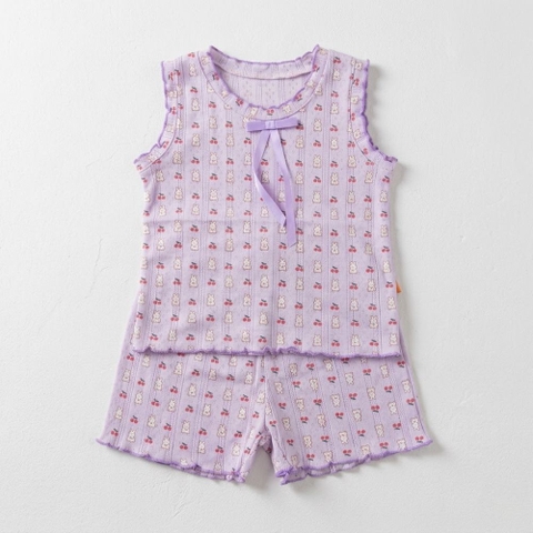 2. Thiết kế 3 lỗ năng động và nữ tính Kiểu dáng áo sát nách (3 lỗ) kết hợp cùng quần đùi ngắn tạo nên sự phóng khoáng, giúp bé tự do vận động cánh tay và chân mà không bị gò bó. Điểm nhấn tinh tế của bộ đồ nằm ở chi tiết thắt nơ lụa nhỏ nhắn trước ngực và đường viền bèo nhún nhẹ nhàng ở gấu áo và gấu quần, tôn lên vẻ đáng yêu, điệu đà đặc trưng của các bé gái.