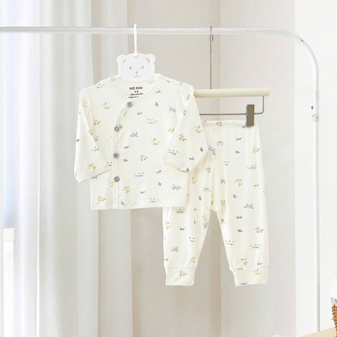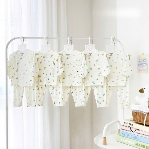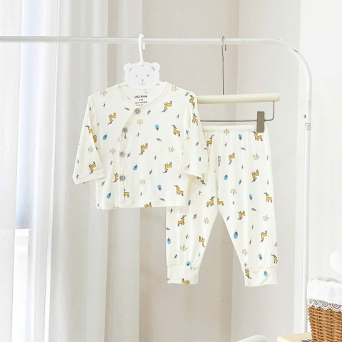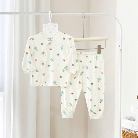 Thiết Kế Cài Chéo Tiện Lợi (Kimono Style): Kiểu dáng cài chéo (cài lệch) giúp mẹ dễ dàng mặc/cởi đồ cho bé, đặc biệt là trẻ sơ sinh còn yếu ớt, không cần phải chui đầu qua cổ áo, hạn chế tối đa việc làm bé giật mình hay khó chịu.