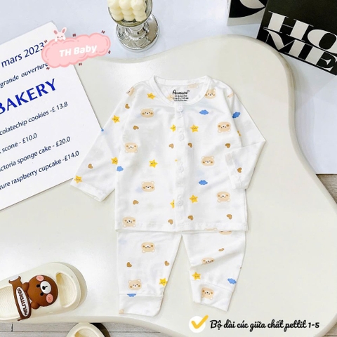 Bộ Dài Tay Sơ Sinh Avasler - Vải Petit Mềm Mịn Cài Giữa - Phù Hợp Bé 0-12 Tháng Tuổi - Thoáng Khí Kháng Khuẩn