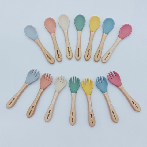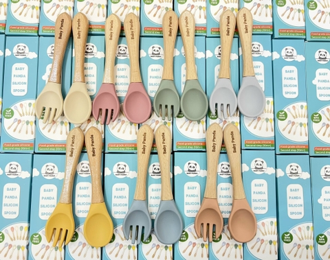 Thìa dĩa silicon cán gỗ ăn dặm cho bé 10 tháng BABY PANDA chính hãng thích hợp với bàn tay nhỏ nhắn của các bé. Mỗi lần lấy ra ăn là bạn đó thích lắm. Kiểu như của riêng mình mà.