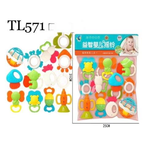 Bộ xúc xắc gặm nướuTL571 gồm 13 chi tiết là món đồ chơi đa năng, thiết yếu cho bé từ 3 tháng tuổi trở lên. Sản phẩm kết hợp chức năng của xúc xắc và gặm nướu, giúp bé phát triển toàn diện các giác quan và giảm bớt sự khó chịu trong giai đoạn mọc răng.