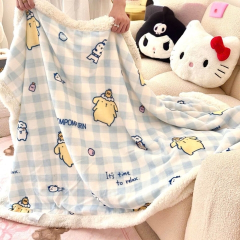 2. Thiết kế họa tiết bắt mắt kích thích thị giác Với bộ sưu tập đa dạng từ Hello Kitty hồng dễ thương, Cinnamoroll xanh dịu mắt đến Pompompurin vàng năng động, sản phẩm giúp phòng ngủ của bé trở nên sinh động hơn. Việc sở hữu một chiếc chăn có hình nhân vật yêu thích sẽ giúp trẻ hào hứng hơn với việc đi ngủ đúng giờ và rèn luyện tính tự lập.