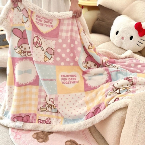Chăn lông cừu hoạt hình cho bé 1mx1m5 là sản phẩm đồ dùng phòng ngủ cao cấp được thiết kế dành riêng cho trẻ em với các họa tiết nhân vật hoạt hình Sanrio nổi tiếng như Hello Kitty, Cinnamoroll, Pompompurin và My Melody. Sản phẩm không chỉ mang lại giá trị thẩm mỹ cho không gian sống mà còn đảm bảo sự ấm áp, an toàn cho làn da nhạy cảm của trẻ nhỏ trong những ngày thời tiết trở lạnh.