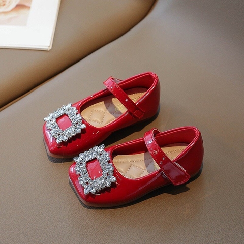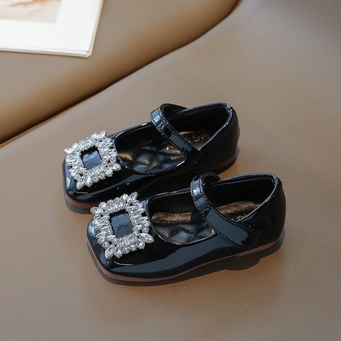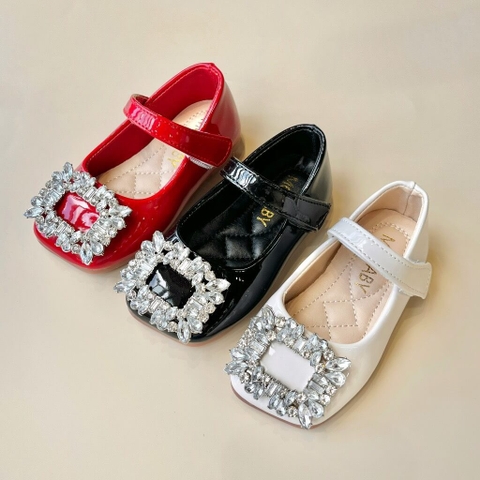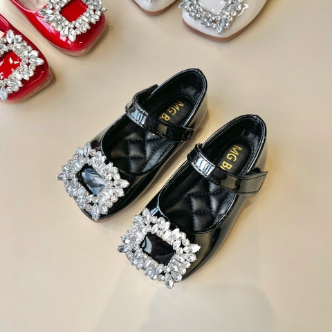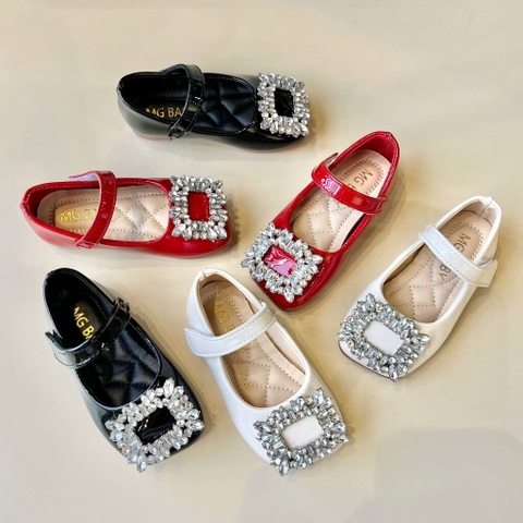Giày búp bê da PU bóng mềm đính đá lấp lánh điệu đà cho bé gái - Giày đế bệt có quai ngang phong cách công chúa