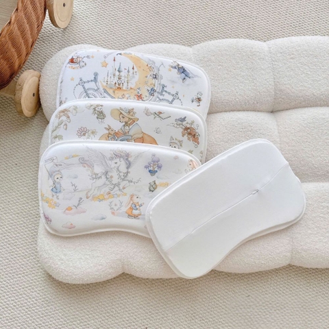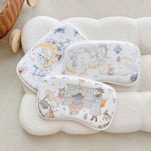 Thiết kế họa tiết cổ tích tinh tế Điểm khác biệt lớn nhất của dòng gối Bubble Tree chính là những bức tranh cổ tích được in sắc nét trên bề mặt gối. Từ những chú thỏ đánh đàn, cỗ xe ngựa trăng khuyết cho đến những nàng tiên cá nhỏ, mỗi họa tiết đều mang phong cách vintage nhẹ nhàng, kích thích thị giác và trí tưởng tượng của bé ngay từ những năm tháng đầu đời. Mực in an toàn, không phai màu và không gây kích ứng da.