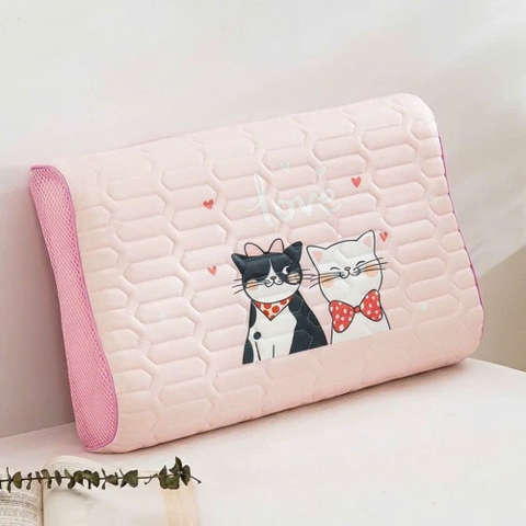 Chất liệu vỏ gối: mặt trước là Vải cao su non thoáng mát. mặt sau là vải lưới thoáng khí,