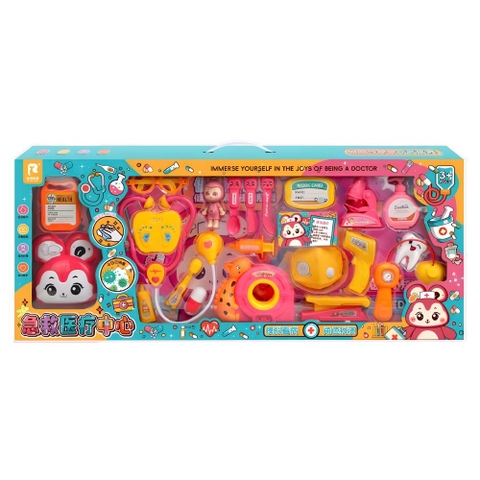 Bộ đồ chơi mô phỏng một trung tâm cấp cứu y tế và nha khoa thu nhỏ, bao gồm hàng chục món đồ chơi chi tiết và sống động, trong đó có: