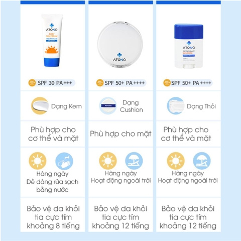 Làn da của trẻ nhỏ vốn mỏng manh và nhạy cảm gấp nhiều lần so với người lớn, đặc biệt là khả năng tự bảo vệ trước tác hại của tia cực tím còn rất yếu. Việc lựa chọn một sản phẩm chống nắng chuyên biệt, an toàn và lành tính là ưu tiên hàng đầu của các bậc phụ huynh. Kem chống nắng ATONO2 Baby Sun Cream SPF30 PA+++ là giải pháp hoàn hảo, giúp bảo vệ tối ưu làn da bé dưới ánh nắng mặt trời mà vẫn đảm bảo sự dịu nhẹ tuyệt đối.