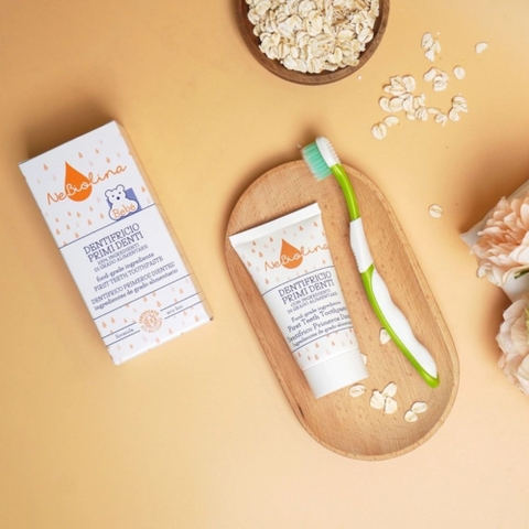 Kem đánh răng Nebiolina là sản phẩm được đặc chế dành riêng cho trẻ từ 0-3 tuổi, giai đoạn bé bắt đầu mọc những chiếc răng sữa đầu tiên. Với thành phần từ yến mạch hữu cơ, kem đánh răng Nebiolina nhẹ nhàng làm sạch răng và nướu, bảo vệ men răng non nớt của bé, đồng thời an toàn tuyệt đối ngay cả khi bé vô tình nuốt phải.