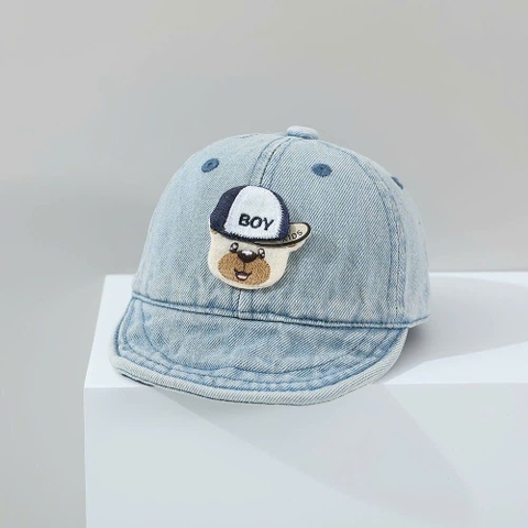 Chất liệu Denim cao cấp và an toàn Sản phẩm được làm từ chất vải jean (denim) mềm mại, đã qua xử lý bề mặt để đảm bảo độ êm ái, không gây kích ứng cho làn da nhạy cảm của trẻ nhỏ. Khả năng thấm hút mồ hôi tốt giúp da đầu bé luôn thông thoáng, thoải mái ngay cả khi vận động ngoài trời trong thời gian dài.