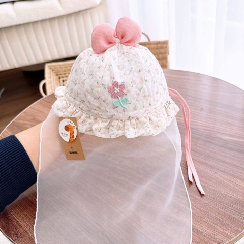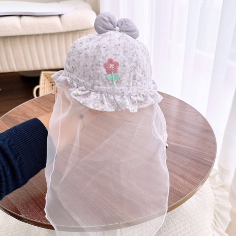 Tên sản phẩm: Mũ vành hoa nhí kèm khăn voan cho bé.