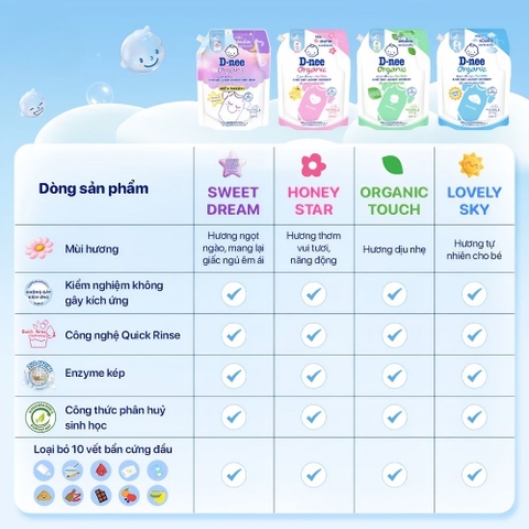 - Dnee đặc biệt thích hợp để giặt đồ trẻ em, đặc biệt là trẻ sơ sinh. Dnee là sự lựa chọn của rất nhiều bà ba mẹ vì mùi cực kì dễ chịu mà lại bám dai.