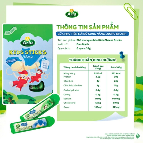 Với kết cấu mềm mịn, vị béo ngậy nhẹ nhàng không gây ngấy, Arla Kids Cheese Sticks dễ dàng chinh phục ngay cả những bé kén ăn nhất. Hãy để Arla đồng hành cùng sự phát triển khỏe mạnh của bé yêu mỗi ngày.