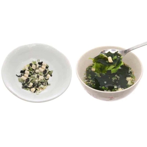 Thành phần: Rong biển khô (wakame), đậu hũ sấy khô, hành lá sấy khô.