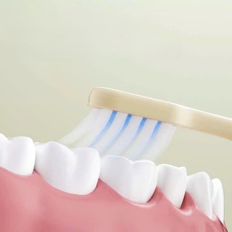 Làm sạch mảng bám tối ưu: Lông bàn chải phân bố mật độ dày giúp tăng diện tích tiếp xúc với bề mặt răng, làm sạch sâu các răng hàm phía trong.
