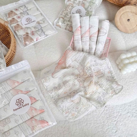 Khăn sữa là vật dụng bất ly thân và tiếp xúc trực tiếp với làn da nhạy cảm của trẻ sơ sinh hàng ngày. Thấu hiểu điều đó, Honee Baby mang đến dòng sản phẩm Set 5 khăn sữa xô muslin 2 lớp với họa tiết cổ tích nhẹ nhàng, không chỉ đảm bảo tính thẩm mỹ mà còn ưu tiên hàng đầu cho sức khỏe làn da của bé.