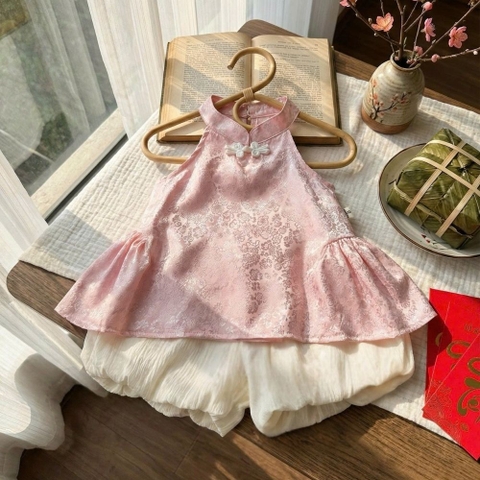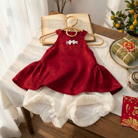 Chào mừng ba mẹ đến với bộ sưu tập thời trang trẻ em cao cấp. Dịp Tết Nguyên Đán và các lễ hội đầu năm là thời điểm tuyệt vời để các thiên thần nhỏ diện những bộ trang phục mang đậm nét truyền thống nhưng vẫn giữ được sự hồn nhiên, tinh nghịch. Sản phẩm Set yếm gấm quần bí phồng chính là lựa chọn hoàn hảo để bé yêu tỏa sáng trong mọi khung hình.