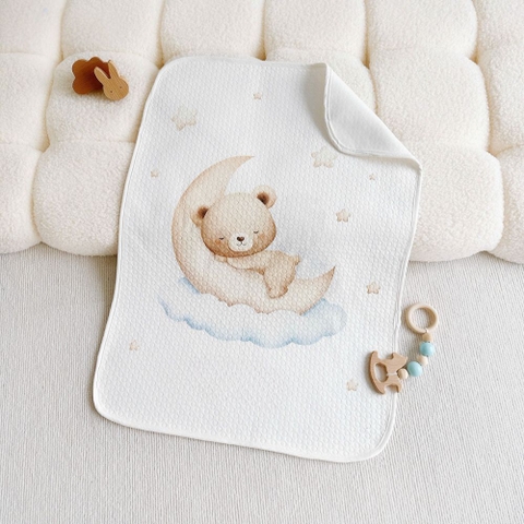 Sử dụng đa năng: Với kích thước 50x70cm, mẹ có thể trải trên giường, nệm, cũi, ghế sofa hoặc dùng lót trên xe đẩy khi đưa bé đi dạo. Đây cũng là bề mặt lý tưởng để mẹ thay tã cho bé một cách vệ sinh nhất.