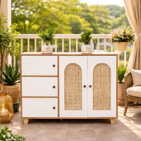 Tủ kệ giày 3 tầng cánh mây chân gỗ là sự lựa chọn tuyệt vời cho những ai yêu thích vẻ đẹp tự nhiên và phong cách nội thất mây tre đan. Đừng ngần ngại mang đến cho không gian nhà bạn một làn gió mới với sản phẩm này!