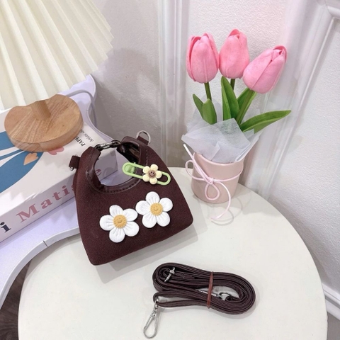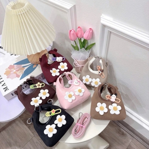 Chào mừng bạn đến với bộ sưu tập phụ kiện dành cho các thiên thần nhỏ. Nếu bạn đang tìm kiếm một món quà vừa đáng yêu, vừa giúp bé rèn luyện tính ngăn nắp và tự tin thể hiện phong cách cá nhân, thì sản phẩm túi xách da lộn hoa cúc kèm kẹp thú chính là sự lựa chọn hoàn hảo. Đây không chỉ là một chiếc túi thông thường mà còn là điểm nhấn thời trang cao cấp dành riêng cho các bé gái trong độ tuổi mầm non và tiểu học.