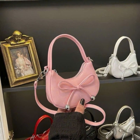 Sản phẩm túi xách mini đính nơ là món phụ kiện không thể thiếu trong tủ đồ của các bé gái yêu thích phong cách thời trang tiểu thư, thanh lịch. Với thiết kế hình bán nguyệt độc đáo kết hợp cùng điểm nhấn nơ xinh xắn, mẫu túi này không chỉ là vật dụng đựng đồ cá nhân nhỏ gọn mà còn là điểm nhấn hoàn hảo cho mọi bộ trang phục từ váy công chúa đến đồ dạo phố năng động.