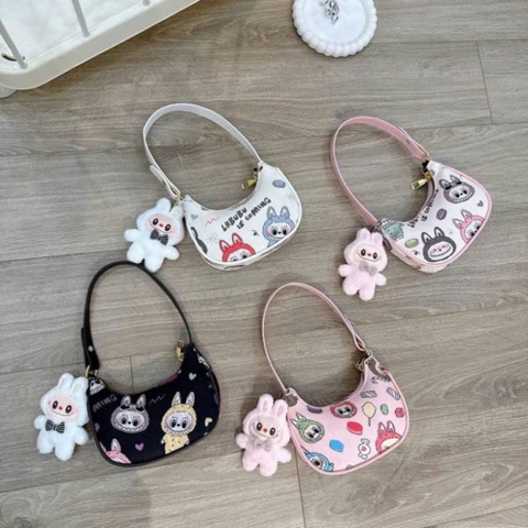 Sản phẩm được thiết kế theo phom dáng túi kẹp nách (hobo bag) đang là xu hướng hàng đầu trong làng thời trang. Hình dáng bán nguyệt mềm mại kết hợp cùng dây đeo có độ dài vừa phải giúp bé có thể linh hoạt đeo vai hoặc xách tay. Điểm nhấn nổi bật nhất chính là sự xuất hiện của nhân vật Labubu với những biểu cảm đáng yêu, mang lại vẻ ngoài tinh nghịch nhưng không kém phần sang trọng.