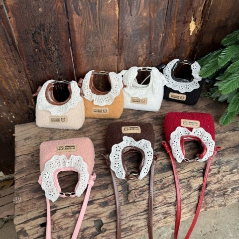 Thiết kế viền ren phong cách Vintage Điểm nhấn đắt giá nhất của chiếc túi chính là phần cổ viền ren trắng được thêu họa tiết đục lỗ tinh xảo. Chi tiết này mang đậm phong cách cổ điển, biến chiếc túi trở thành một món đồ trang sức cao cấp, giúp bé trông giống như một nàng công chúa nhỏ.